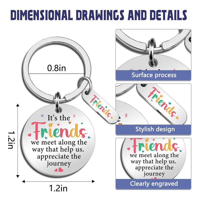- Friendship Gifts for Women: This friendship keychain is a unique gift to show how much you cherish the friendship. The touching message, "It's the Friends we meet along the way that help us appreciate the journey," serves as a daily reminder of the joy, support, and laughter that friends bring.