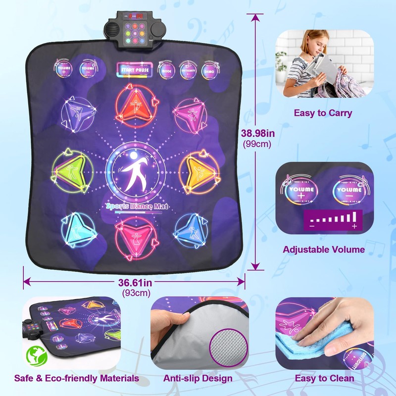 • ✅【INTERACTIVE LED GAME SYSTEM】: With 9 LED arrows synchronized with rhythm patterns, this dance rug transforms playtime into an immersive experience. The 9 pre-programmed game modes include freestyle and challenge formats to develop coordination and sense of rhythm. Keeps children engaged through visual cues and dynamic displays.