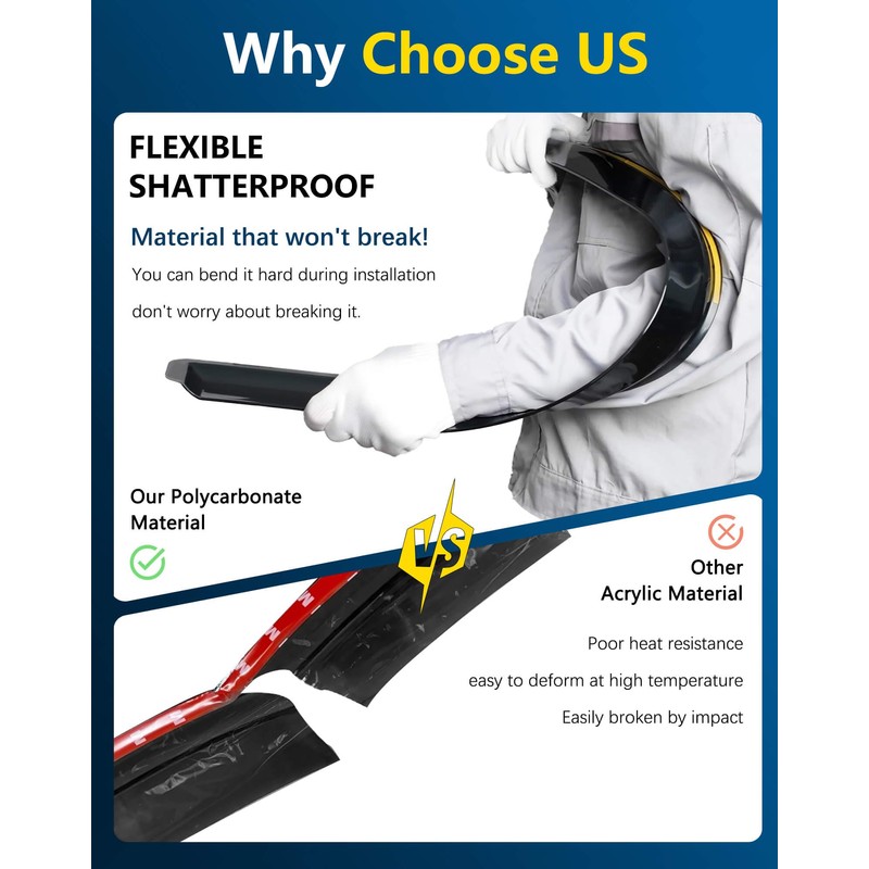 - Durable & UV Resistant: Our window rain guards are made from shatterproof, impact-resistant polycarbonate for long-lasting durability. UV-coated to prevent fading and cracking, even under extreme sunlight