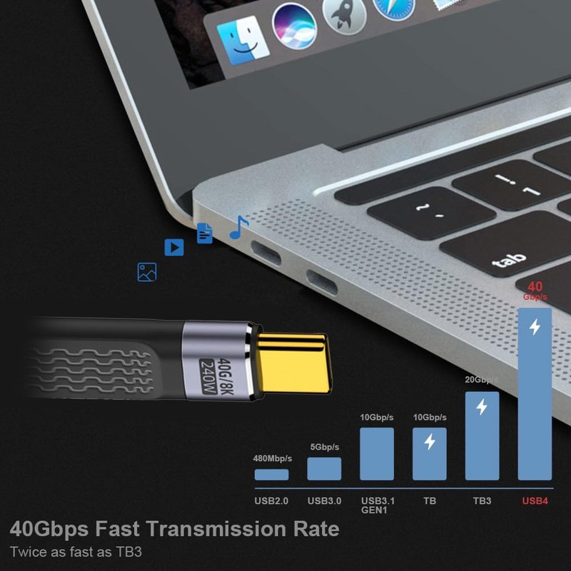 CY USB4.0 Cable 240W Power Type-C USB-C Male to Male USB4 40Gbps 100W 8K Flat Slim FPC Data Cable 13cm