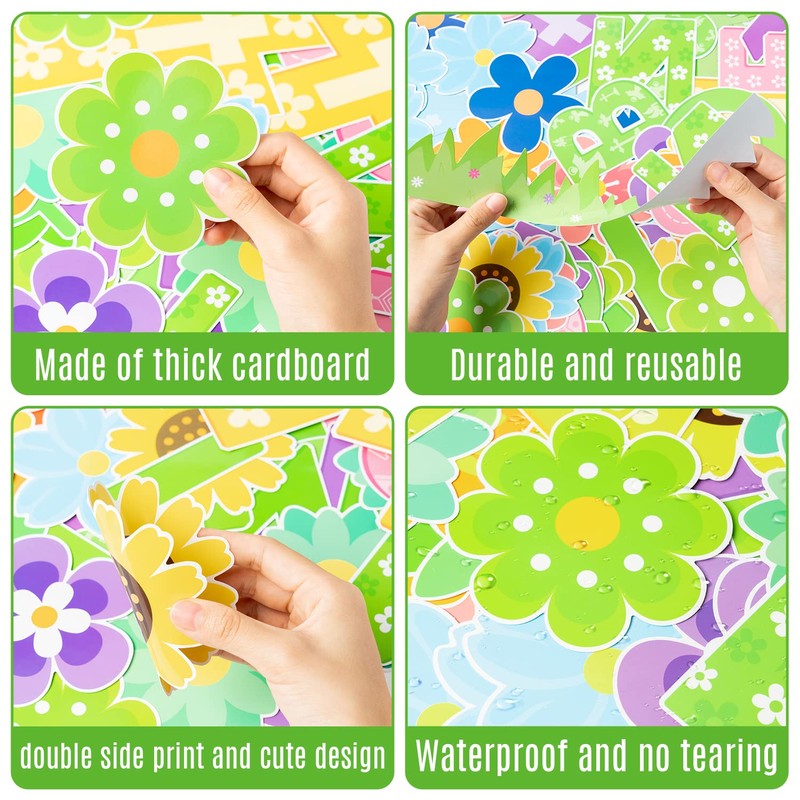 - [Enough Quantity] A total of 106pcs large packages of products, 70pcs cutouts including Spring flowers and cross cutouts, Blooming for Jesus cutouts, 6 sheet glue and 12pcs grass trim and 24pcs cloud trim. enough to allow you to decorate any place,such as school classrooms, kindergartens, preschools, nursery rooms, boys' and girls' bedrooms and so on, adding a touch of the religious atmosphere