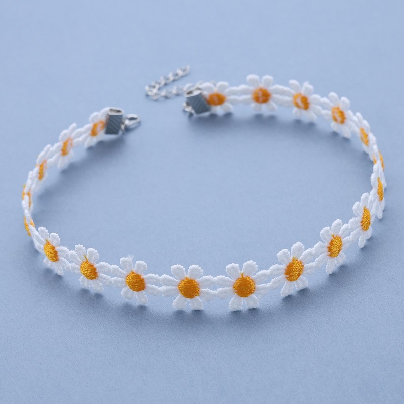 Cybche White Lace Collar Necklace Daisy Flower Collar Chain Daisy Flower Collar Necklace Daisy Lace Clavicle Collar Jewellery for Women, Zinc, No Gemstone