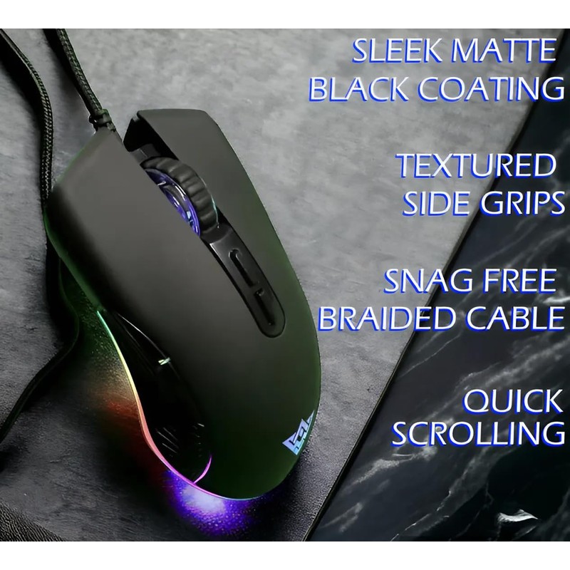 Cyber Byte Fallshot Wired Optical Gaming Mouse - 82g Ergonomic Design - RGB Underglow - 12.8K DPI - 1,000Hz - Snag Free Braided Cable
