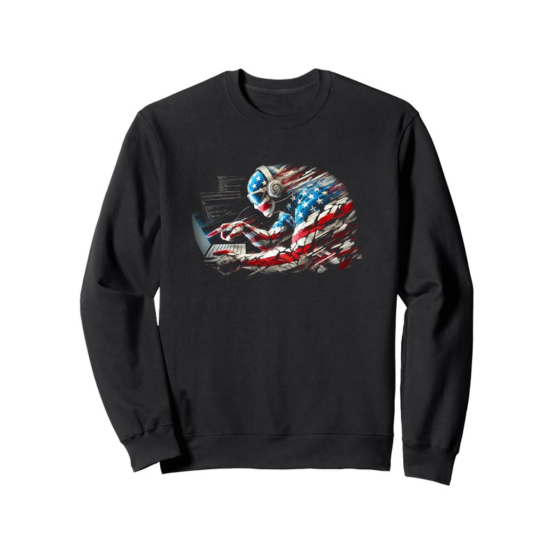 Cyber Security American Flag Proud Tech Patriot Design Sweatshirt