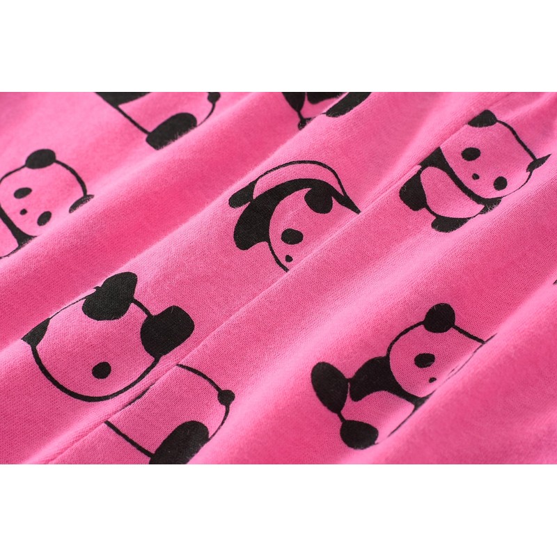 - These girls pajamas short sleeve top is crew neck with cute feature printed adorable grey pandas graphics at front with text "GIRL'S DREAM IN PINK"and tagless shirt label.