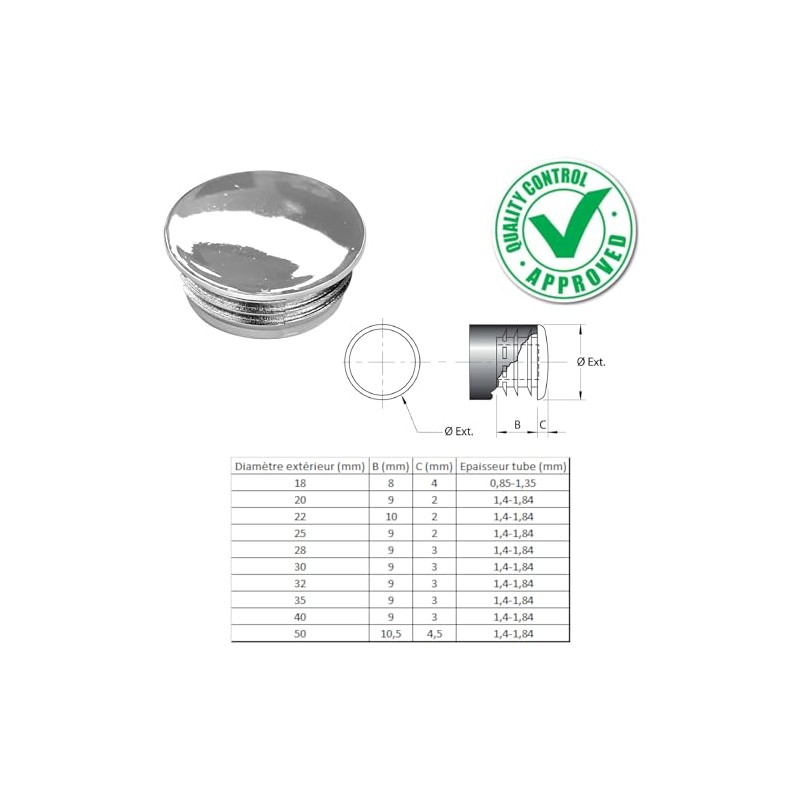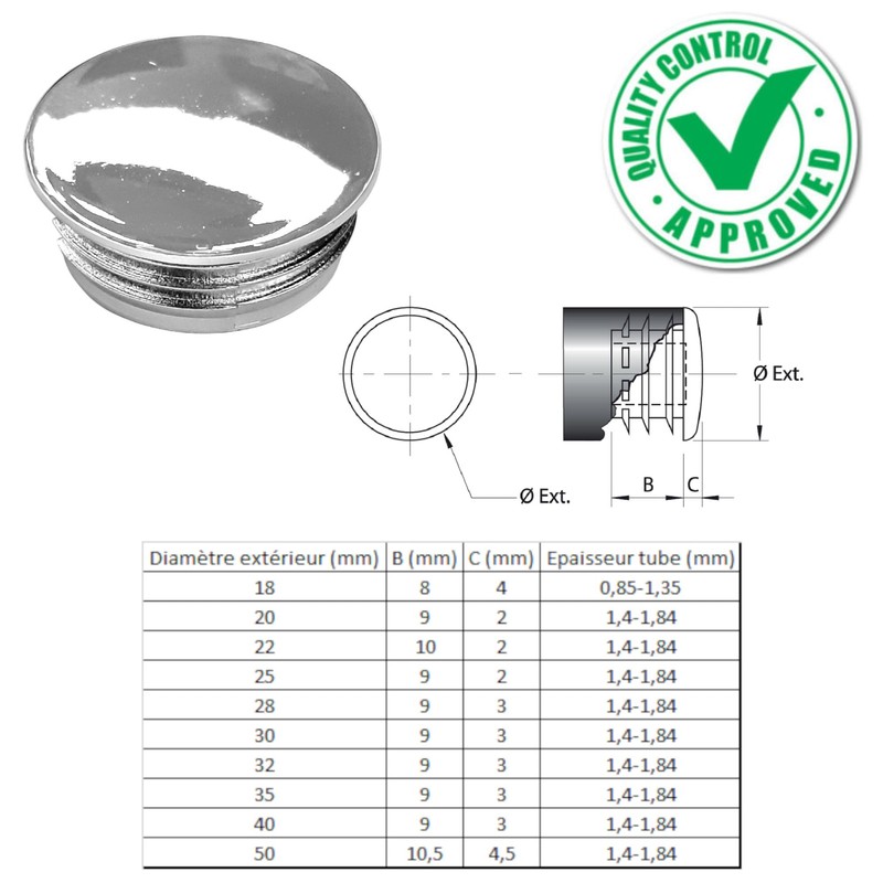 - 4 x lamellar plugs chrome for round pipes; good performance and easy to install;