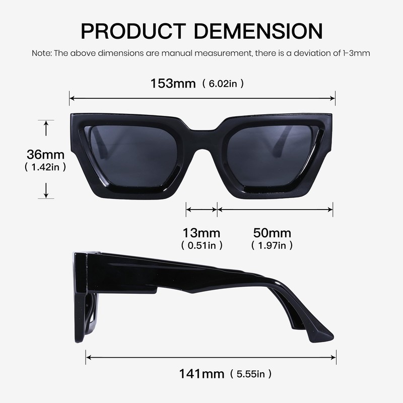 - Provide Best Product and Customer Service: In case any accident of the shipping or unexpected damage happened to these square thick sunglasses. Please contact us without hesitation, we will reply within 24 hours to solve the problem until satisfaction. You have no risks to try. And we will provide best product and customer service to you.