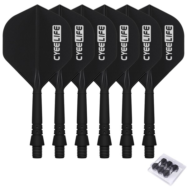 CyeeLife 6 Packs Integrated Dart Flights and Shafts,one Piece Accessory-Black