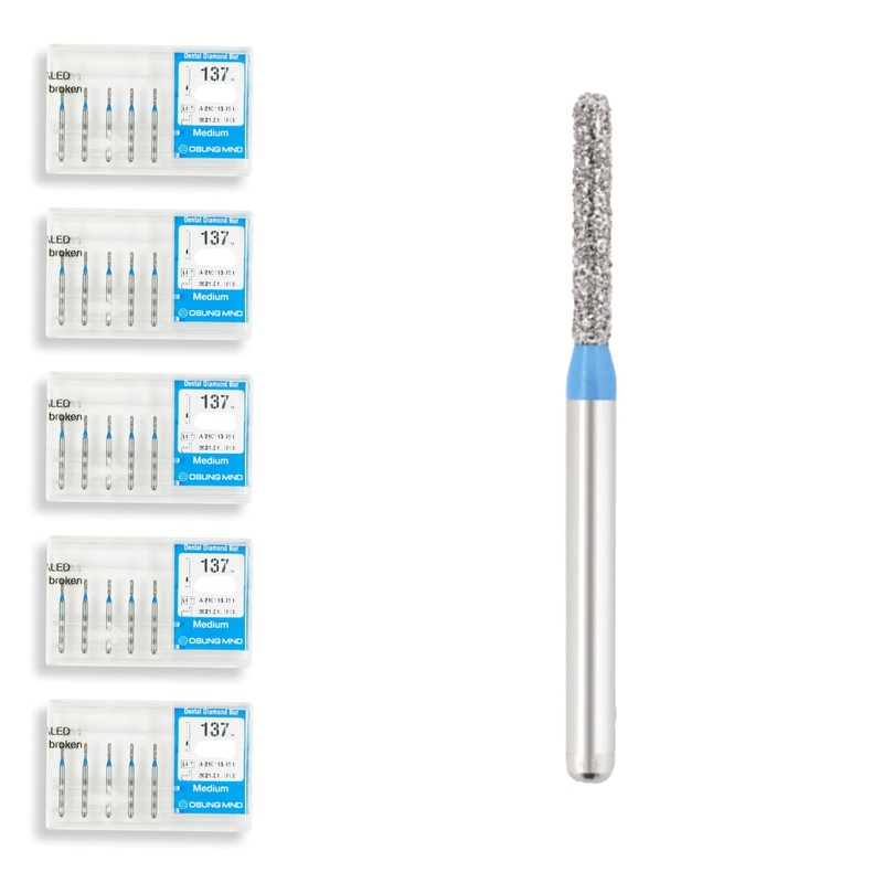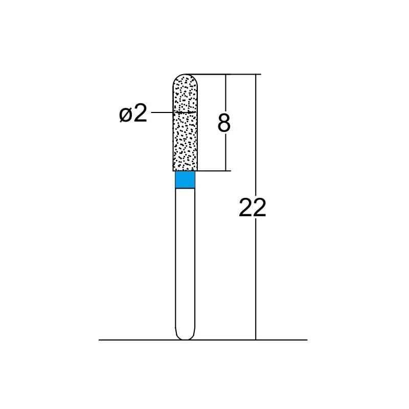 Cylindrical, Hemispherical End 2 mm Dia. Medium Grit Diamond Dental Bur 25 Pcs. 137.20M1