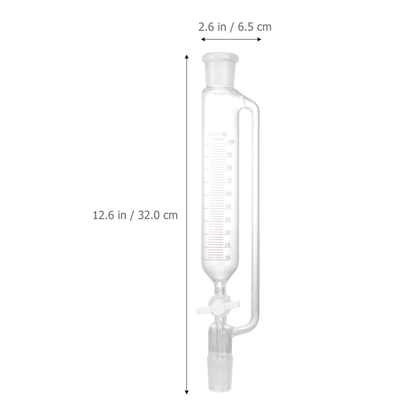 Cylindrical Separatory Funnel with PTFE Stopcock, 100ml, Transparent Glass for Laboratory Use, 12.59x2.36x2.16inch