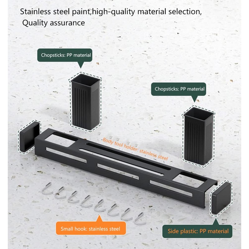 - 【Multi-purpose】: Stainless steel knife holder with stainless steel hook for more storage space. Such as scissors, whisks, peelers, spoons, and keys. The upper layer is stainless steel knife holder storage, the lower layer has hooks, thick brackets, strong bearing capacity, the shelf is more stable, making people more assured and safer.