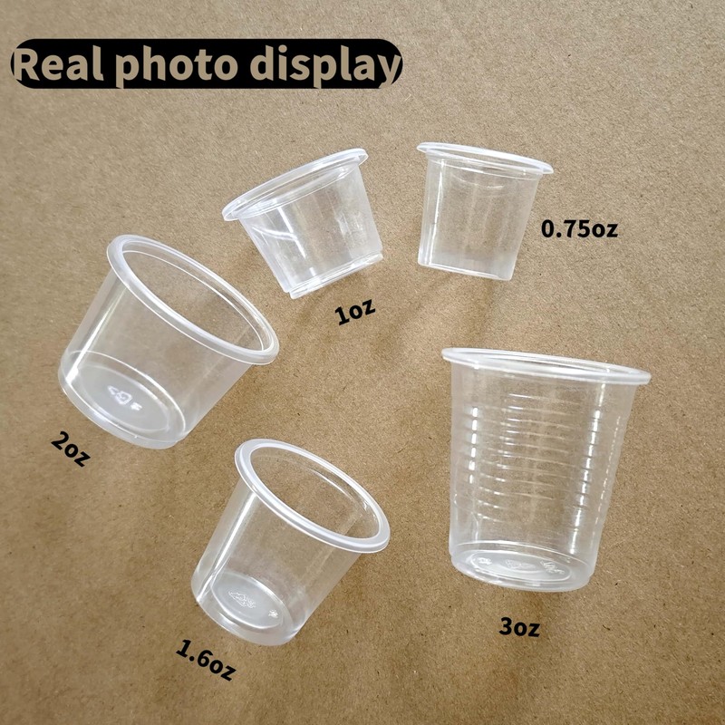 - There are multiple capacity options for the small cup: 0.75oz/1oz/1.6oz/2oz/3oz Packaging: 100 pieces per pack (200 pieces equals 2 packs). We sell 200, 500, 1000, 2000 pieces, and the more, the higher the cost-effectiveness