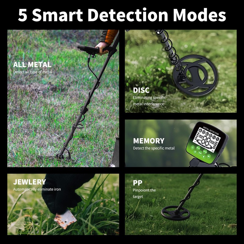 - 5 Professional Modes: product contains all metal mode, disc mode, memory mode, jewlery mode, pinpointer mode. detector de metales oro y plata for precise target Identification