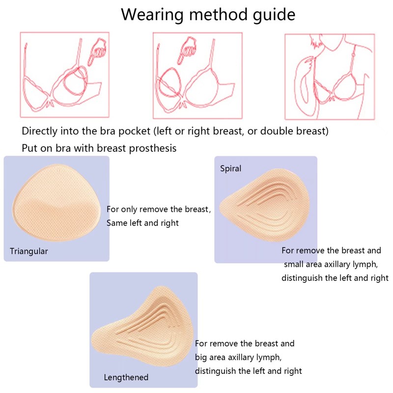 - 【INSTRUCTIONS】: Use double-sided tapes to secure breast form directly to bra or bra sized swimwear. Never attach adhesives to flat side of breast form and never secure product to your skin with adhesive. Can be used in most mastectomy bras without the need of tape if secured in a pocket.