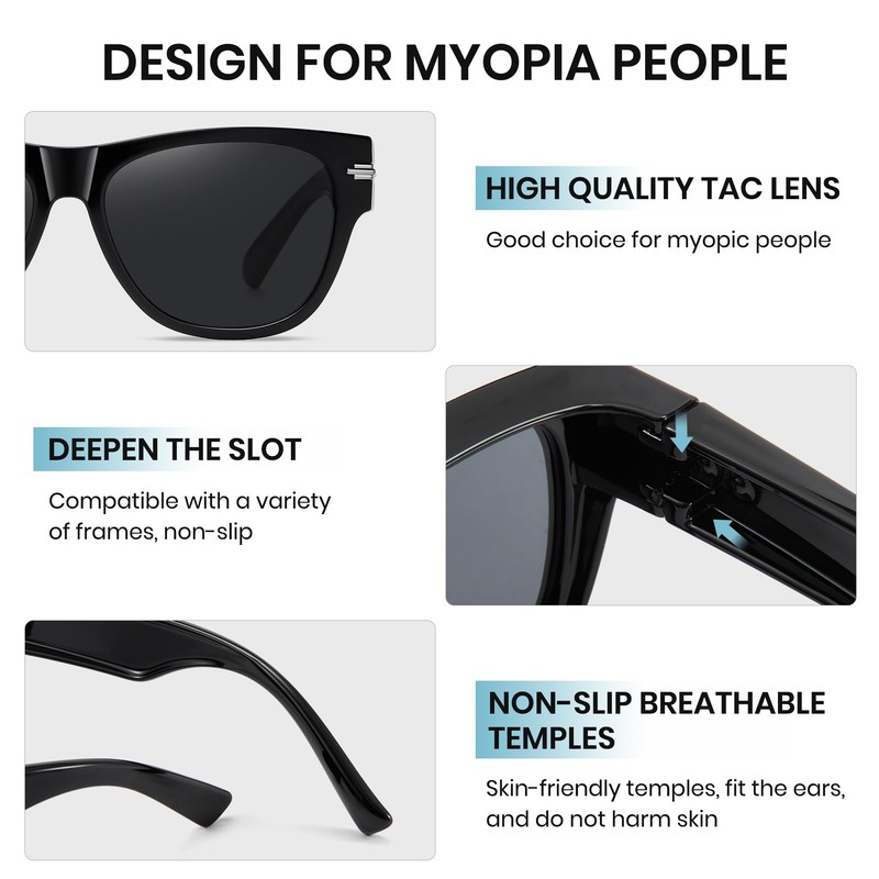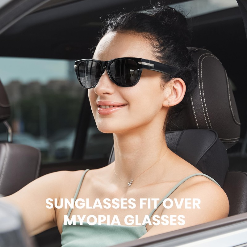 - オーバーサングラス:メガネの上から掛けられるオーバーサングラスで、スクエア、ウェリントン型などのレンズ幅が小さいタイプにも対応可能で、装着しやすく、度付きのメガネをかける方や運転者などにおすすめします。また、ゆったりとした構造で圧迫感がなく、快適な装着感を実現します