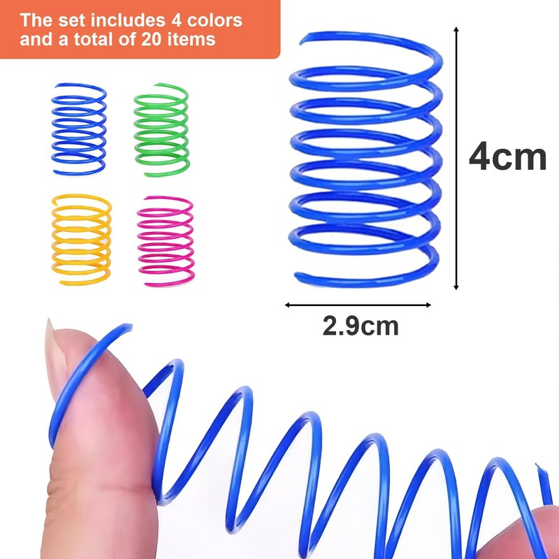 - Pack of 20 spiral cat toys - The set contains 20 colourful spirals made of durable plastic, specially designed for your cat's fun. Perfect for cats of all ages to promote their natural instincts.