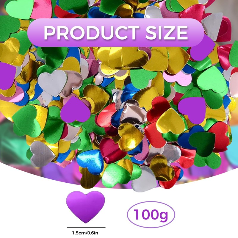 - Versatile decoration for any occasion: you will receive 100g heart shape mixed confetti in bright colors, ideal for weddings, anniversaries, birthday parties and more. With a size of approx. 1.5 cm per piece, it offers enough quantity for any event.