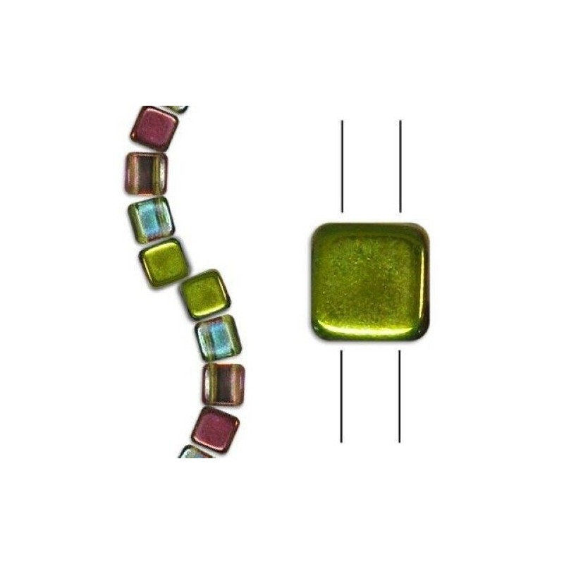 Czech 8 inch strand of High Quality Czech Glass 2 hole Beads - 6mm Square - Tile101