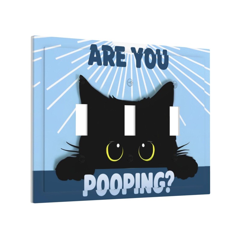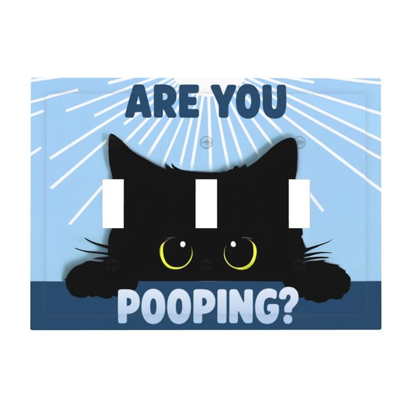 CZRPKEN Light Switch Cover Plate Witch Funny Cat Humorous Text & Sunburst Pattern Design 3 Gang Decorative Wall Plate Triple Toggle Switchplate Blue Background for Bathroom