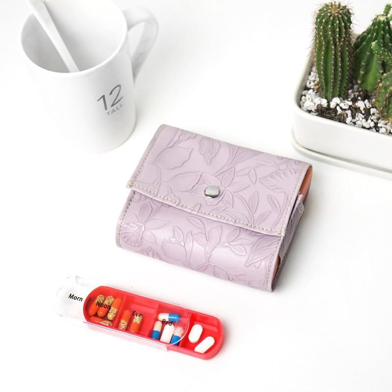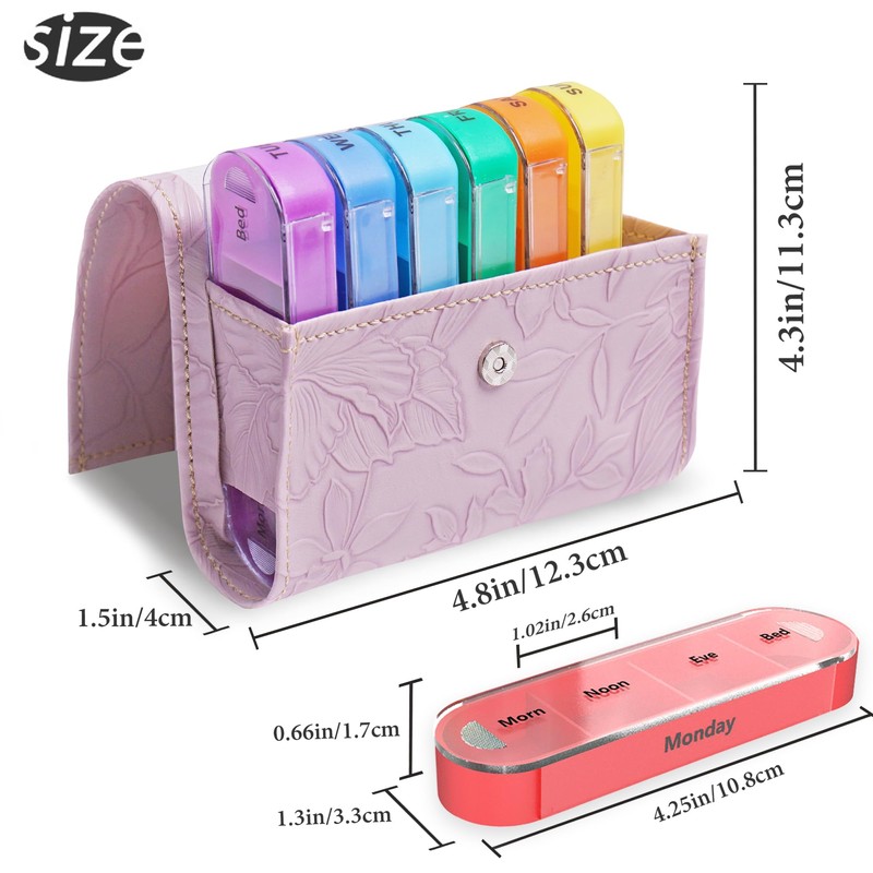 • Czzmy The pill box is lightweight and compact. The handy size of the sturdy leather bag (5.1 x 2 x 4.5 inches) fits in your purse, suitcase, backpack, bag, gym bag, which means you can take it anywhere when you travel.