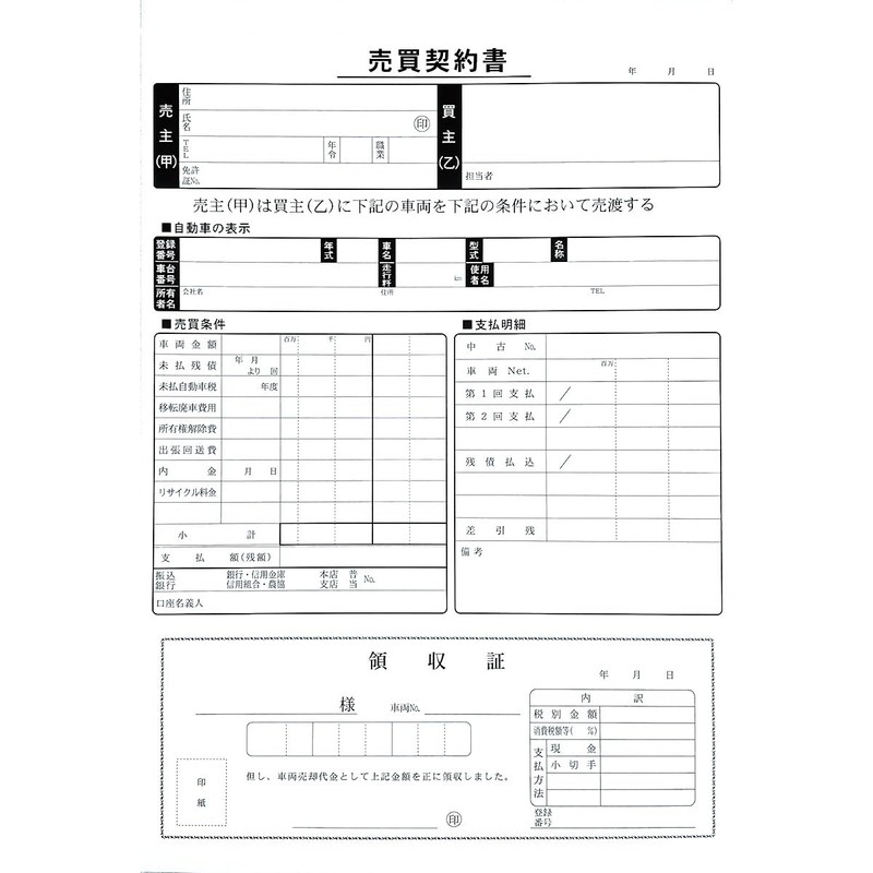 D-14N Sales Contract (For Purchase) 3 Pack Purchase Documents (For Car Sales/Documents/Slips)
