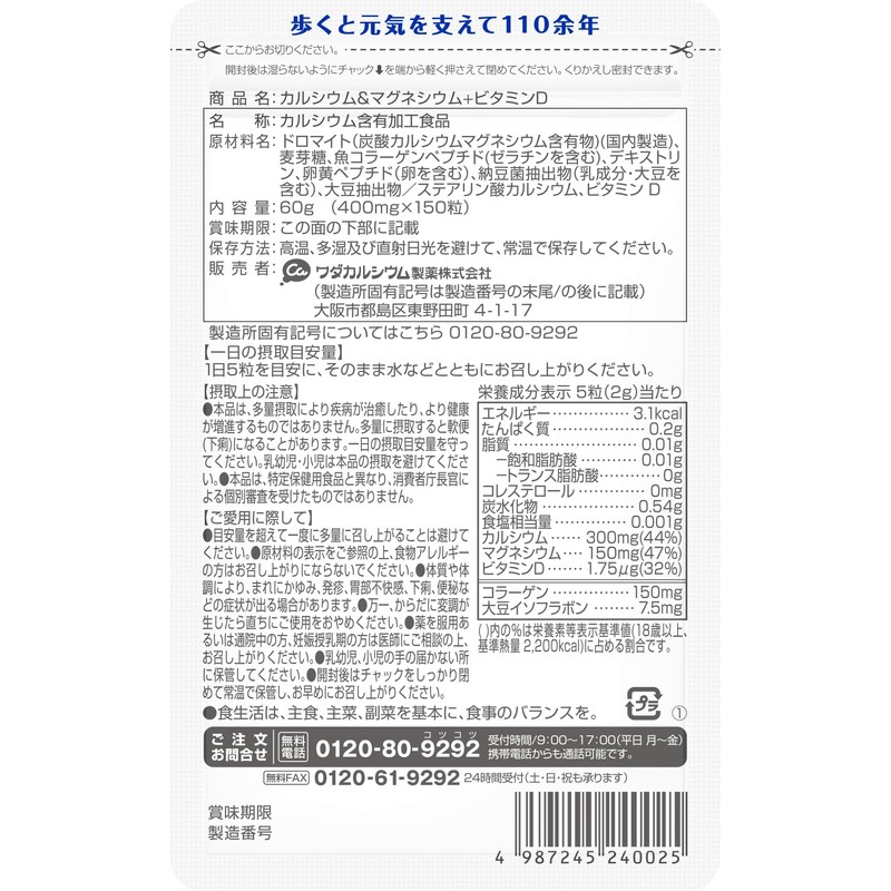 カルシウム & マグネシウム + ビタミンD サプリメント【骨と歯の形成に必要な栄養素】 ベースサプリ 栄養機能食品 国内製造 ワダカルシウム製薬 (3袋)