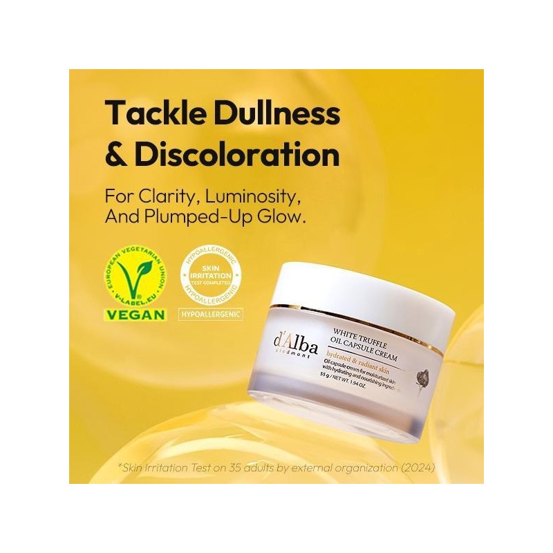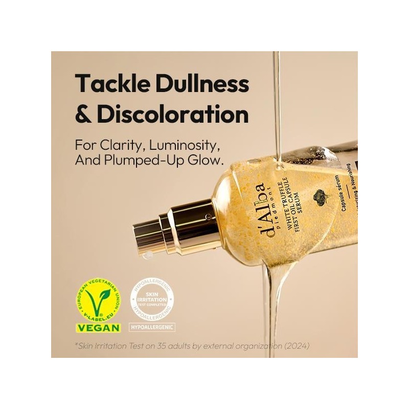 Signature Trufferol Complex: Infused with d’Alba’s Trufferol Complex, a patented blend of White Truffle Extract and Vitamin E (Tocopherol), this formula helps relieve oxidative stress, rejuvenate skin, and protect against environmental damage.