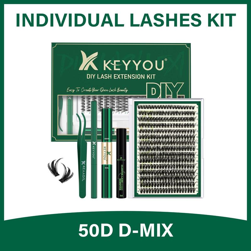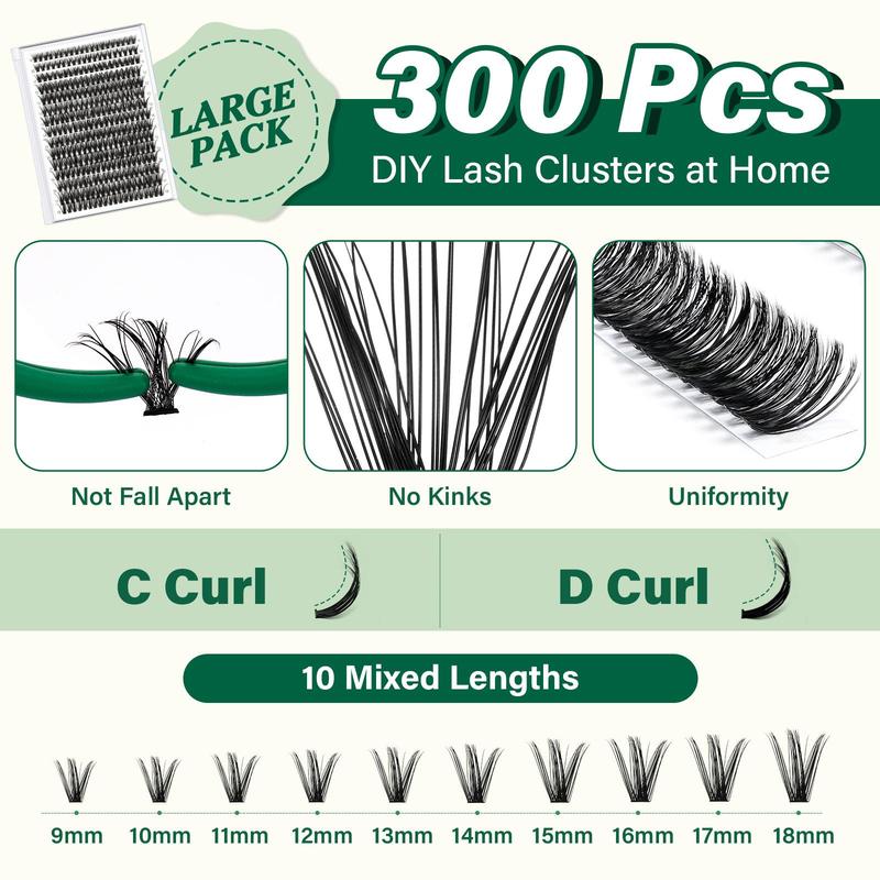 D Curl Eyelash Extension Kit, 5 Counts/set Mixed Length Lash Clusters with Glue & Tweezers & Glue Remover & Brush, Eye Makeup Enhancement Tool for Women, Lash Clusters Kit