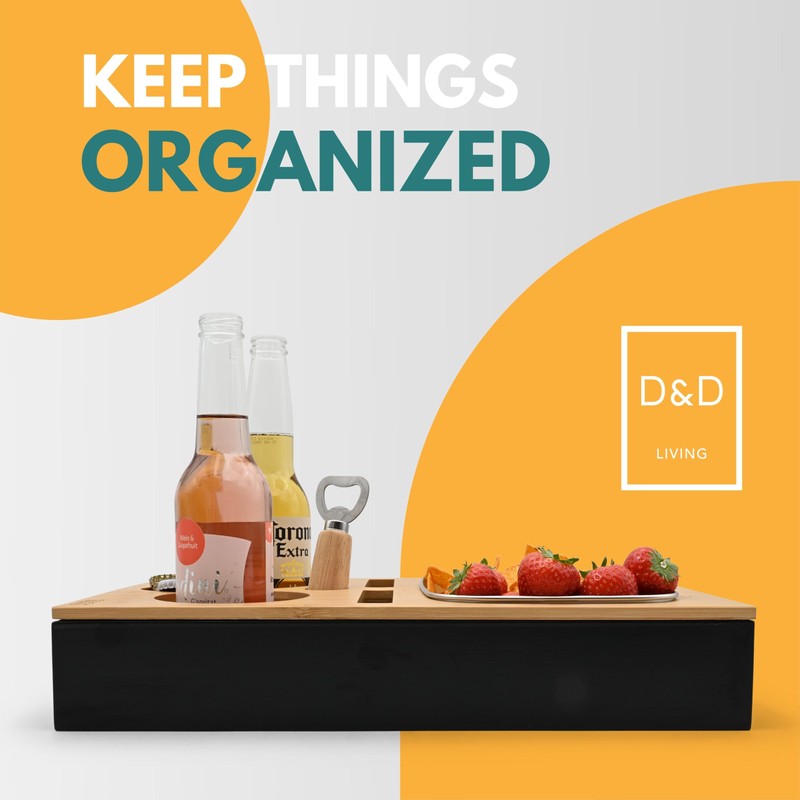 - Premium Bamboo: Enjoy the natural beauty and exceptional durability of our couch caddy made from sustainable organic bamboo. Its varnished surface offers extra protection against spills and moisture, making it perfect for everyday use.