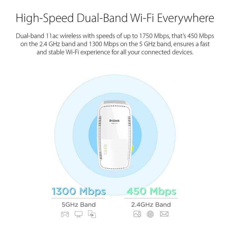 - Dual-band, with combined Wi-Fi speeds of up to 1750 Mbps - Strengthens and extends the range of your existing Wi-Fi network coverage ideal for the home or office. Extends the range of your existing Wi-Fi network coverage by up to 2000 sq. ft.