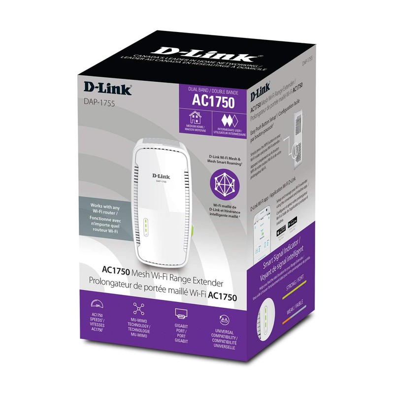 D-Link AC1750 Mesh Wi-Fi Range Extender- Cover up to 2000 sq.ft- Dual Band, MU-MIMO, Mesh, WPA3, Booster, Repeater, Access Point, Extend Wi-Fi in Your Home, Gigabit Port, Easy App Setup, (DAP-1755)