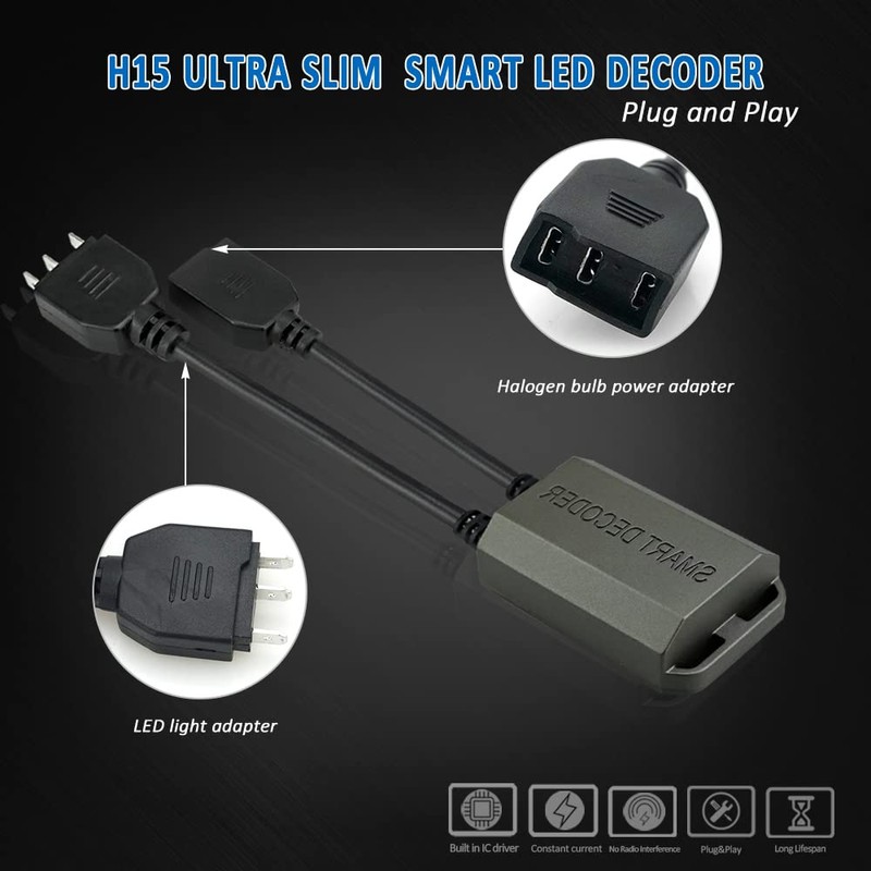 D-Lumina H15 LED Headlight Canbus Decoder Anti Flicker Harness, Bulbs Resisto...