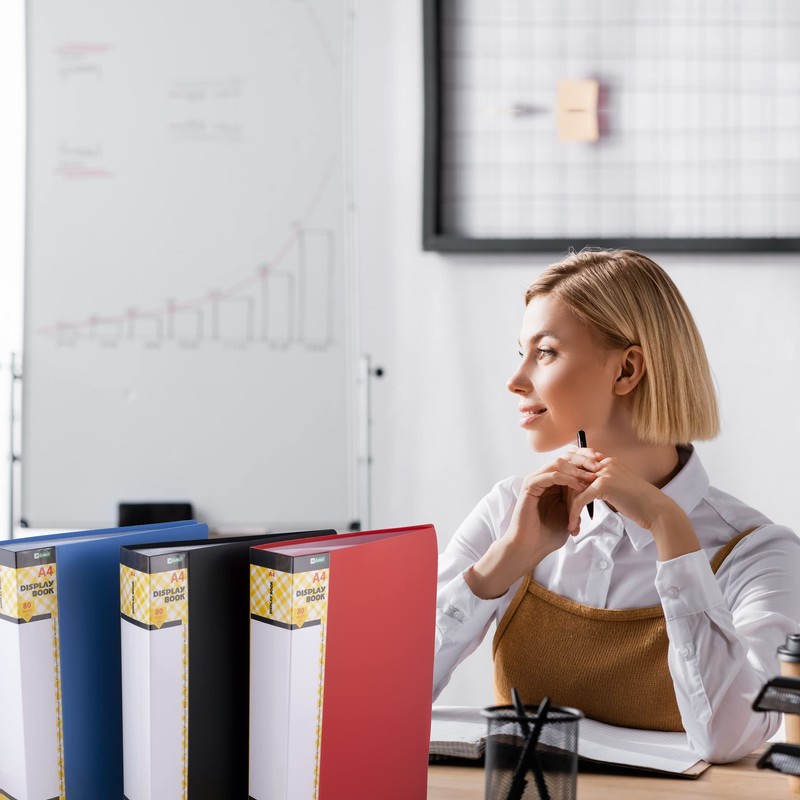 D.RECT Display Book PP A4 80 Pocket Display Folder - Solid Black Presentation Folder