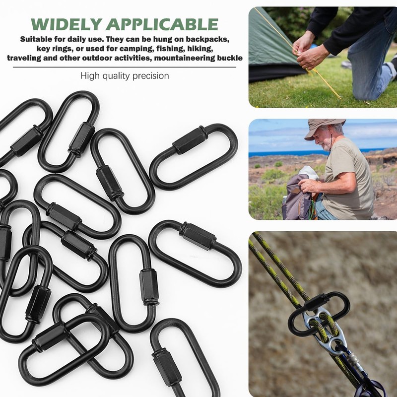- Widely used: our stainless steel screw connectors black are not only suitable for mountaineering, but can also be used for hanging hammocks, climbing, fishing, camping and also as a key ring, backpack pendant, etc., the robust material ensures safer use