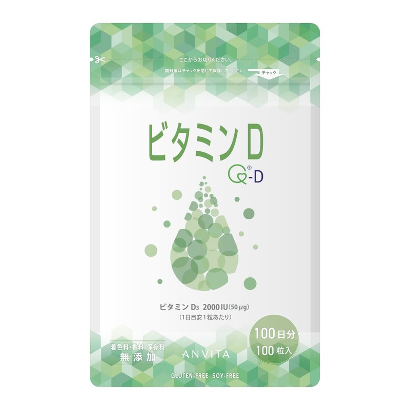 アンビータ ビタミンD3 2000IU 100日分(100粒)イギリス産Q®-D 国内製造 着色料・香料・保存料無添加 ANVITA