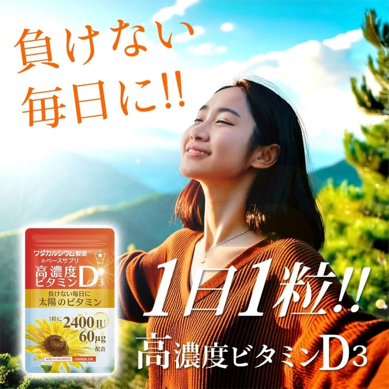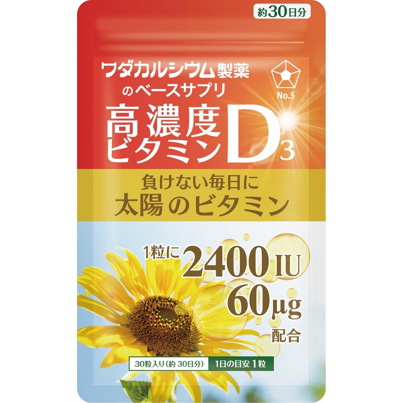 - ☀️【ビタミンD不足】現代社会において「※日本人の98%がビタミンD不足」とされています。(※2023年6月東京慈恵会医科大学 報道発表資料より) 食生活・生活様式の変化、美容目的で日光を避けたりする事が原因と言われています。そこで、1日1粒でお手軽に摂取可能なワダカルシウム製薬のベースサプリ「高濃度ビタミンD3」なら継続してビタミンD3の摂取が可能です。