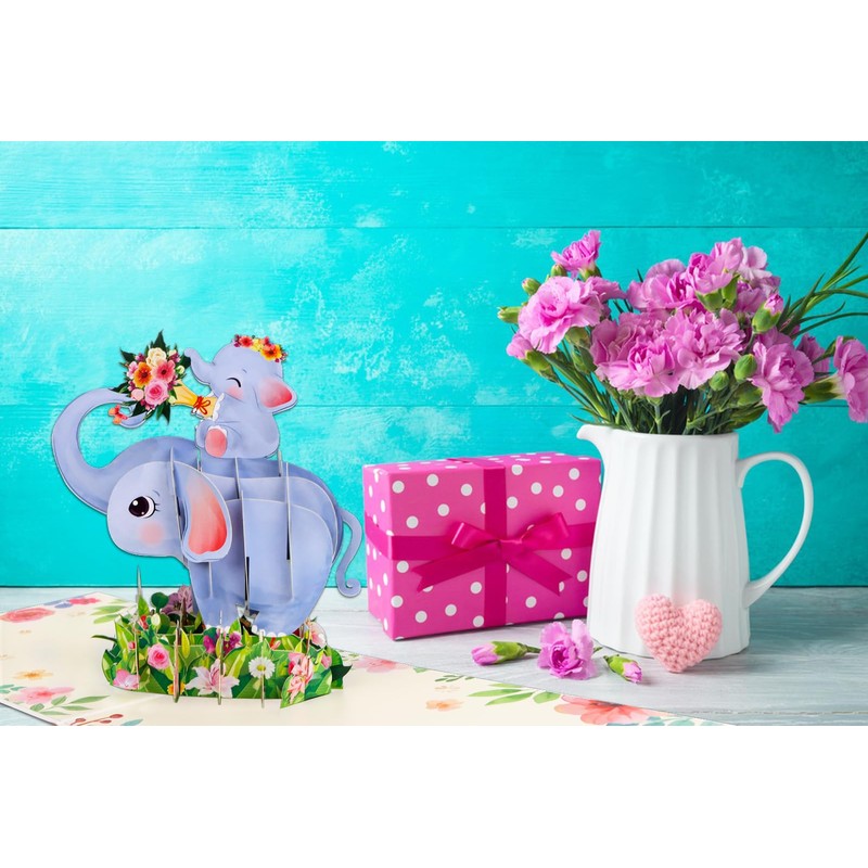 - 【Exquisite Pop Up Design】:This adorable elephant pop up card features a charming design with a mother elephant lovingly carrying her baby amidst a backdrop of colorful flower bouquets. It's a delightful and captivating visual that embodies the boundless maternal love mothers give.