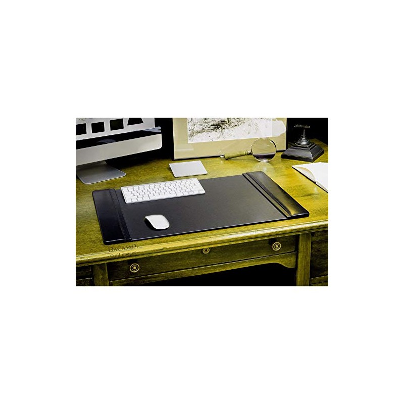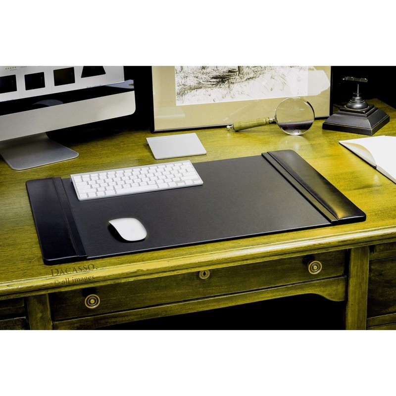 Dacasso Black Leather Side-Rail Desk Pad/Desk Protector/Blotter, 25.5 x 17.25, PR-1002