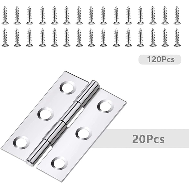 - Package Content: 20pcs stainless steel hinge plus 120pcs screw