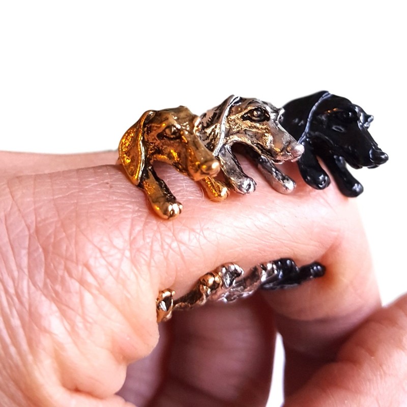 Dachshund Adjustable Metal Wrap Ring by Pashal (Gold)