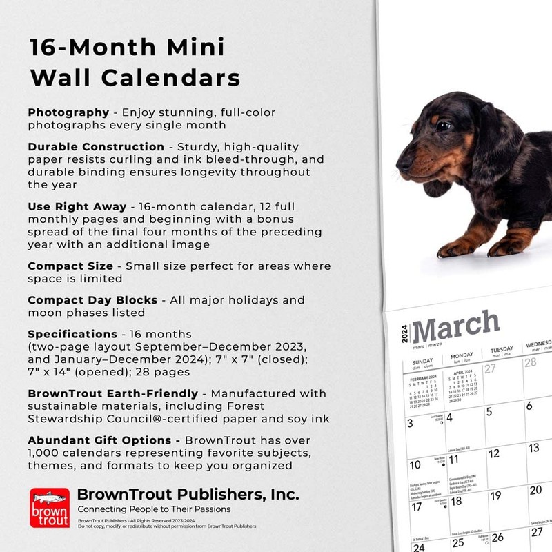 - Abundant Gift Options – BrownTrout has over 1,000 calendars representing favorite subjects, themes, and formats to keep you organized