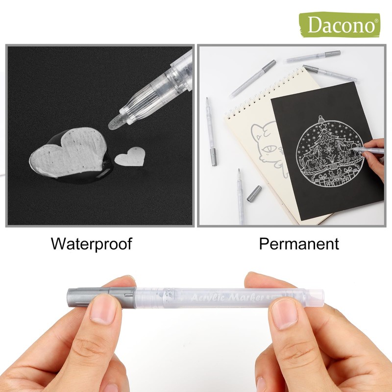 Dacono 8 PCS Silver Acrylic Paint Pens - Acrylic Markers with 2.0mm Tip - Ideal for DIY Crafts on Various Surfaces Like Rocks, Wood, Glass, Ceramic, Fabric, Mugs, and Canvas - Permanent DIY Supplies