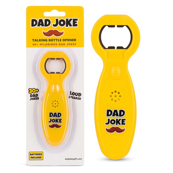 🌟 DURABLE AND EASY TO USE: Made from high-quality materials, the Dad Joke Bottle Opener is designed to last, ensuring years of fun and laughter. Batteries included! The ergonomic grip makes it easy to use, even for dads with the strongest dad hands!