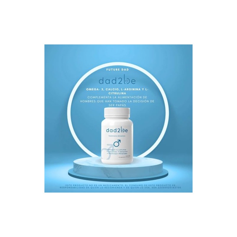 dad2be- Suplemento Alimenticio para hombres que están buscando un proceso de fertilidad| Omega- 3, L-Arginina, L-Citrulina y Ubiquinol| Cápsulas para 30 días de consumo por las mañanas