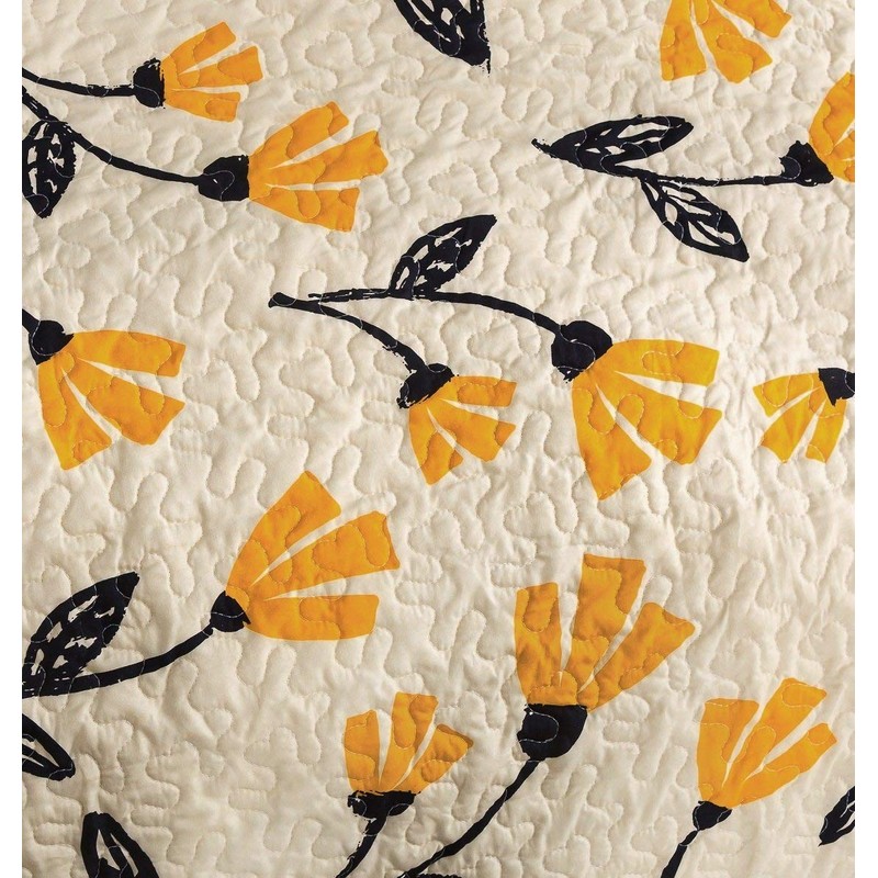 Sleep softly with our scalloped floral yellow quilted bedspread for a one of a kind and vibrant look added to your bedroom. Accented with dainty yellow floral patterns on a solid ivory white background showing off a bright pop of color to your home decor. Made with 100% polyester fabric and contains 100% polyester needled filling created for your comfort for the softest and coziest material.