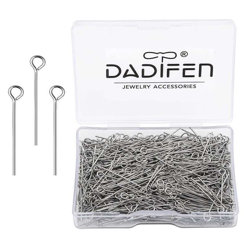 DADIFEN 304 Stainless-Steel Eye Pins for Jewelry Making 24 Gauge Silver Head Pins 0.6x25mm 500pcs/Box Open Eye Pins for DIY Making Earring Necklace Bracelets Dangle Charm Jewelry Findings Eyepins