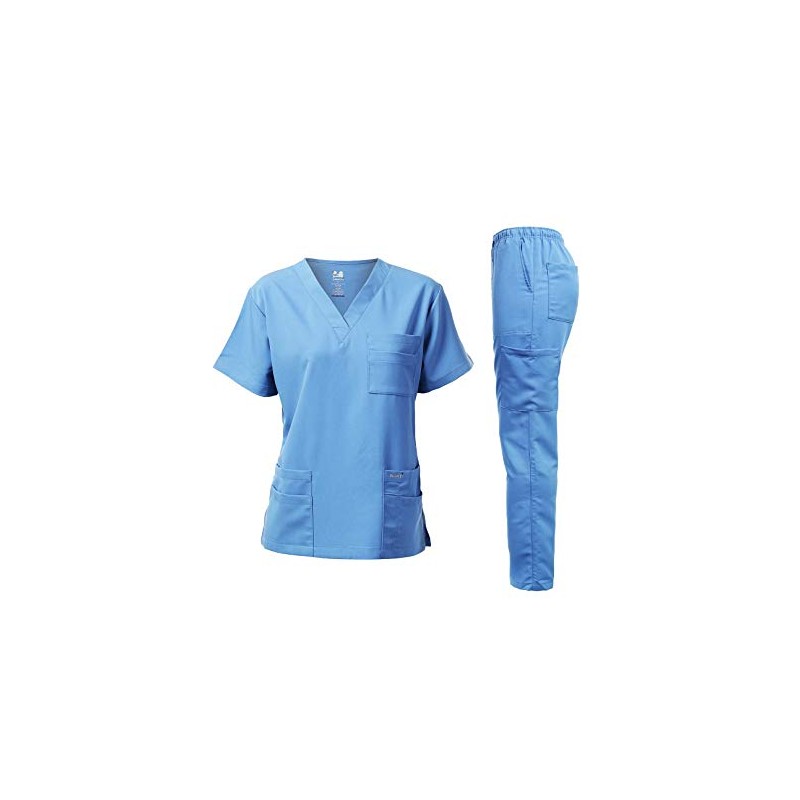 Drawstring scrub pant features a functional drawstring elastic waistband, two front pockets, three cargo pockets, right cargo pocket with instrument/cell phone pocket, back pocket, and straight leg