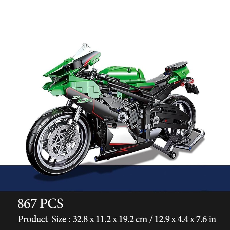 DAHONPA Green Motorcycle Building Blocks Set - 867-Piece Intricate Model, Perfect Holiday Gift and Ideal for Parent-Child Interaction