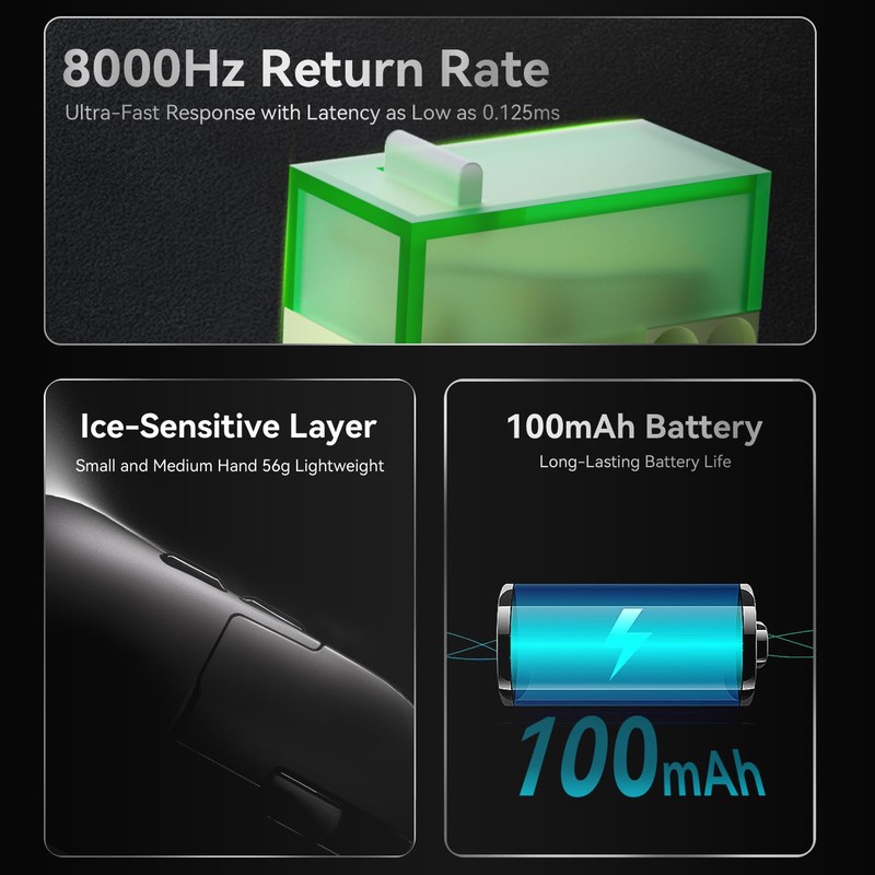 - 【AJAZZ AJ159-APEX】This ergonomic wireless gaming mouse is customized for enhanced performance by utilizing the latest PAW3950 sensor to deliver best-in-class accuracy and precision for fast-paced competitive gaming, delivering up to 42K programmable DPI, 8000hz/0.125ms polling rate, 750 IPS speed and 50g acceleration. Take your gaming experience to the next level.