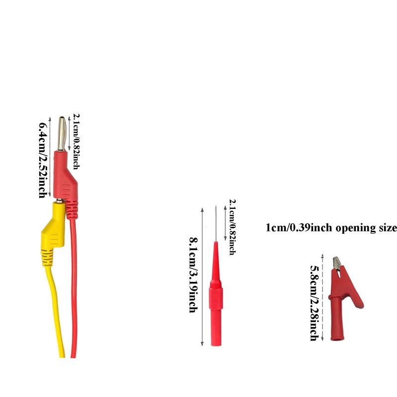 • Package include:5Pcs double banana plug test cables, 5Pcs crocodile clips, and 5Pcs 0.7mm test probes in red, black, yellow, blue, and green colors, safe and durable, providing more convenience for your testing.